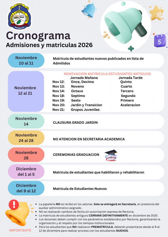 Apreciada comunidad educativa socializamos con ustedes informacion importante para el proceso de matriculas del año escolar 2026.