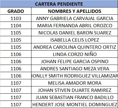 ESTUDIANTES DE GRADO UNDECIMO QUE DEBEN CANCELAR EL PRIMER SIMULACRO DE ACUMULATIVA