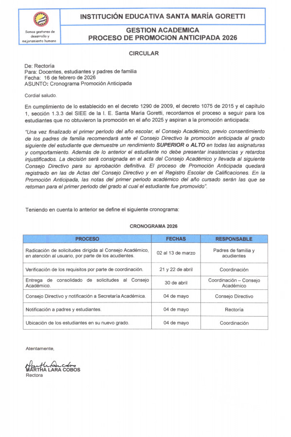 Agradecemos su interés y apoyo en la formación integral de nuestros estudiantes.