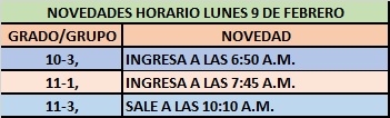 NOVEDADES HORARIO DEL LUNES 9 DE FEBRERO