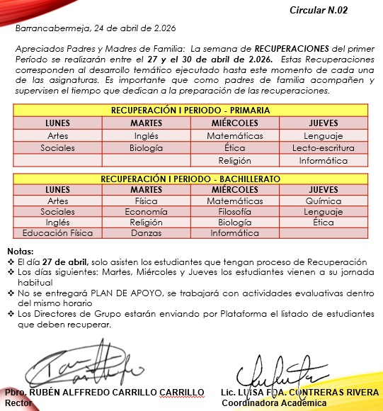 HORARIO DE RECUPERACIÓN I PERIODO